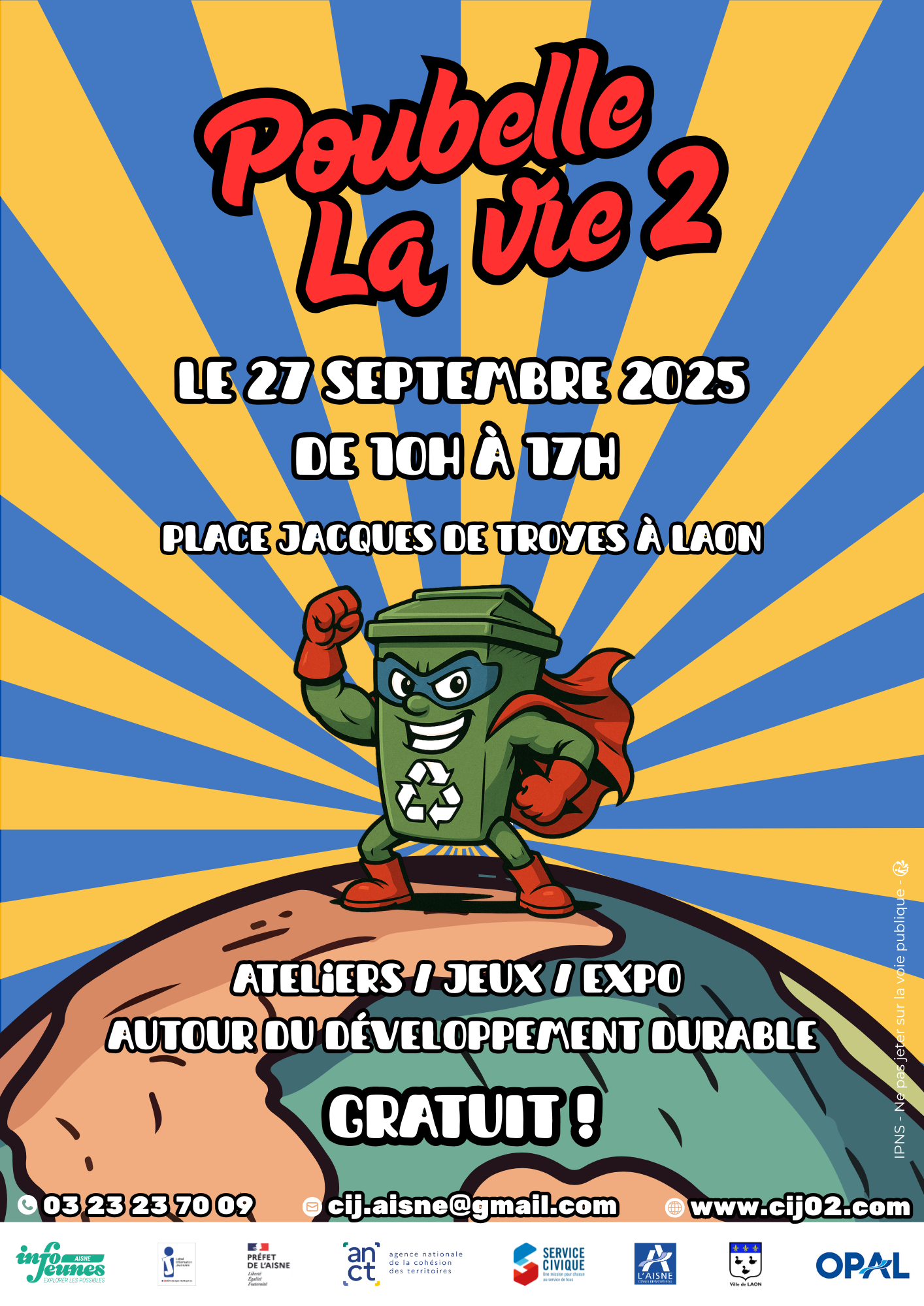 Le samedi 27 septembre 2025, de 10h à 17h, rendez-vous Place Jacques de Troyes à Laon pour une journée autour du développement durable.